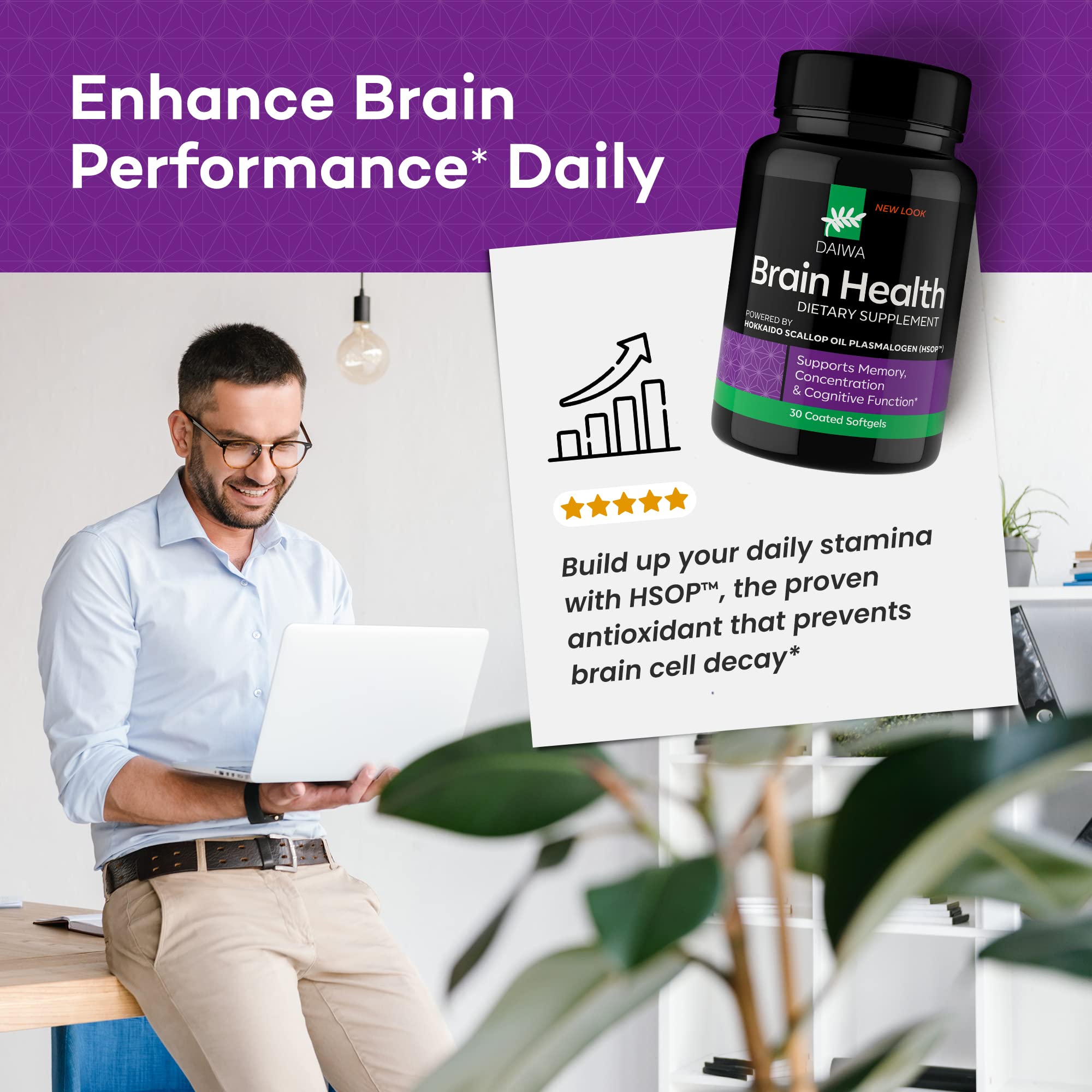 - Brain Health est soutenu par plus de 30 ans d'histoire d'analyse et de recherche de Daiwa Health Development. Améliorez les performances de votre cerveau et augmentez votre endurance quotidienne avec HSOP, l'antioxydant prouvé qui prévient la dégradation des cellules cérébrales.