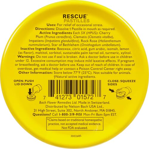 • PASTILLES BACH RESCUE : Pastilles naturelles au citron sans sucre pour aider à soulager les sensations de stress