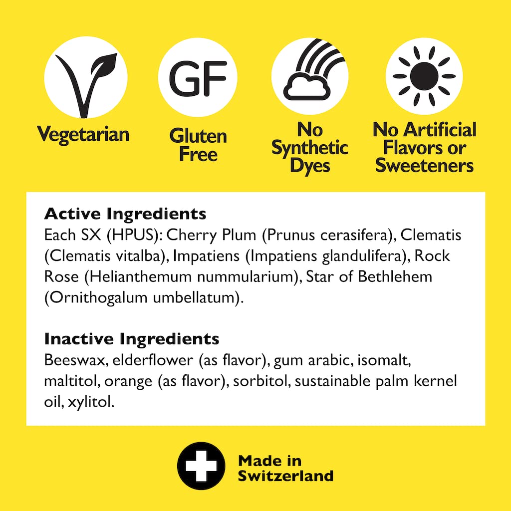- BACH RESCUE PASTILLES: Sugar-free natural orange and elderflower flavored lozenges to help relieve feelings of stress