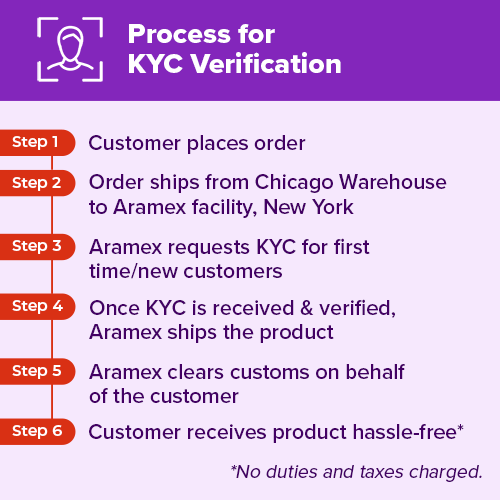 - After placing your order, the carrier will send a link via SMS, email, and WhatsApp. Use this link to submit your KYC documents for customs clearance.